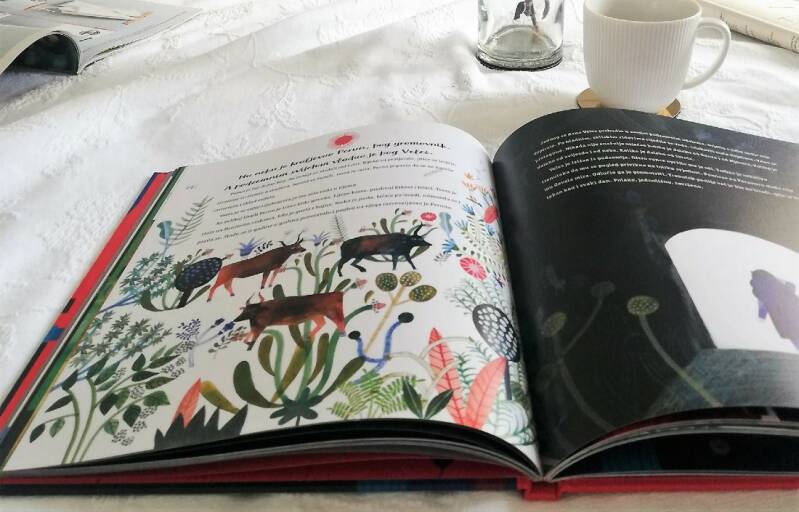 Ima ovdje još puno imena poput Svaroga, boga Sunca čiji je kult bio silno raširen među Slavenima, zatim Striboga, boga izobilja, ali i hučanja, šumećeg vjetra kojeg su se ljudi bojali i gađali ga kamenjima, ili pak Horsa, boga Mjeseca koji se skriva u vodi. Ima i puno priča koje pozivaju na daljnje upoznavanje i istraživanje ovog jedinstvenog svijeta vjerovanja i običaja. A ima i pregršt prelijepih ilustracija za koje je zaslužna Ewa Poklewska-Kozietto. Ugodna (još jednom napominjem i velikim i malim) ušima i očima, ova je knjiga divno štivo s istim takvim ilustracijama.